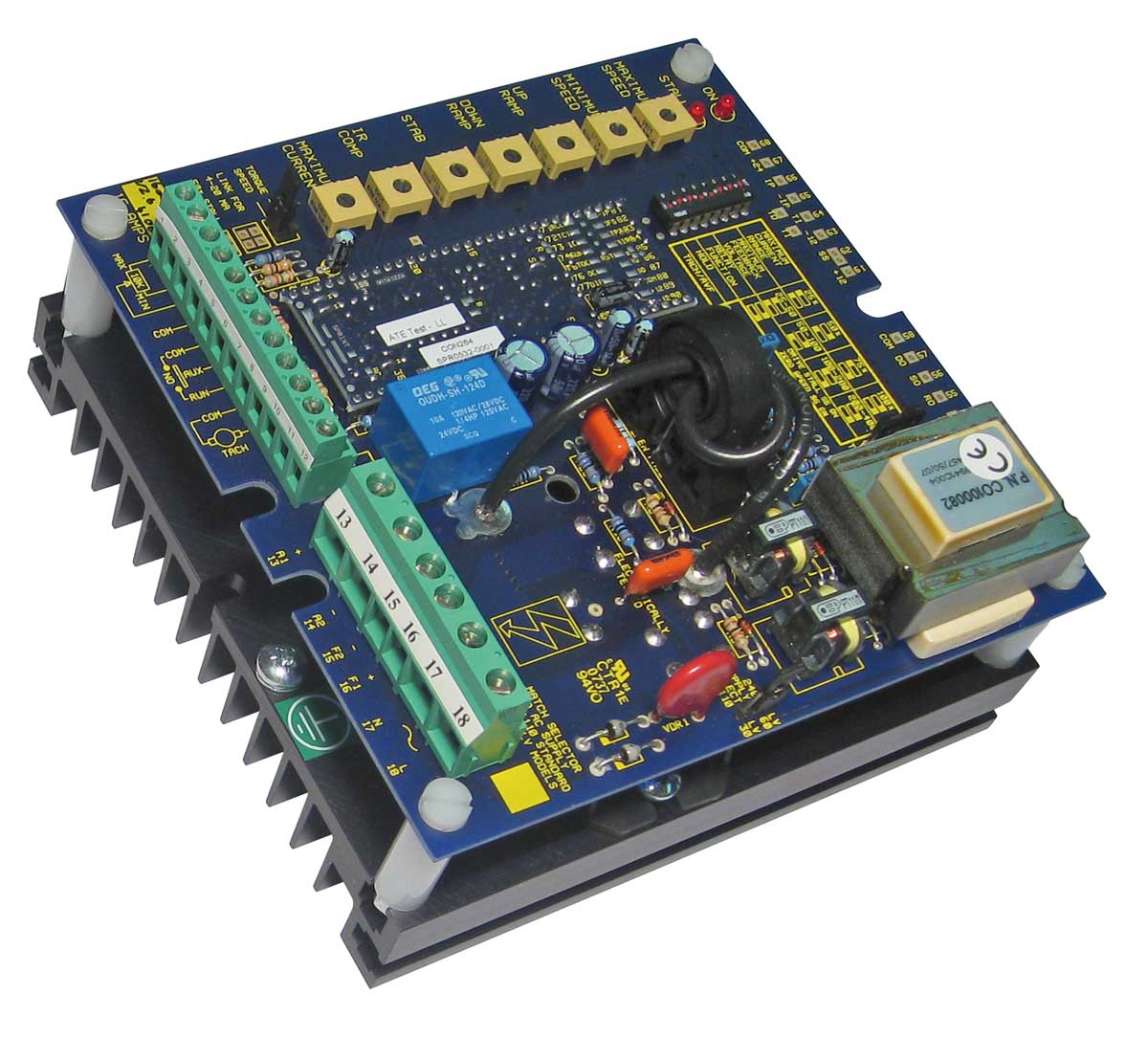 Small footprint speed controller for permanent magnet or shunt wound motors up to 2.2KW. Isolated. 1Q 240/110VAC.