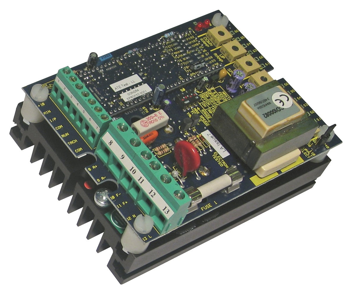 Small footprint speed controller for permanent magnet or shunt wound motors up to 1.1KW. Non-isolated. 1Q. Up to 8A output.